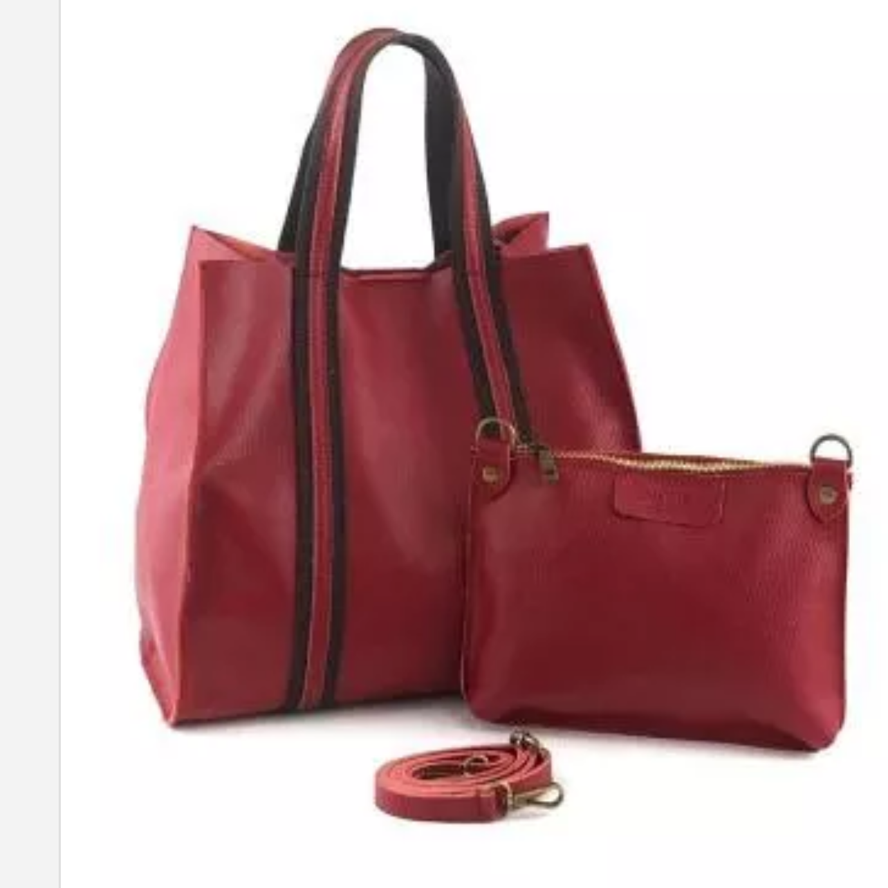 Mala em pele genuína com alças e bolsa necessaire.